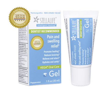 StellaLife® VEGA® Oral Care Peppermint Gel is a revolutionary technology formulated to accelerate healing, relieve pain, and reduce swelling after dental procedures. Doctors have found it effective in managing dry sockets, canker sores, braces/Invisalign, mucositis, cold sores, dry mouth, sores associated with dentures, more.*